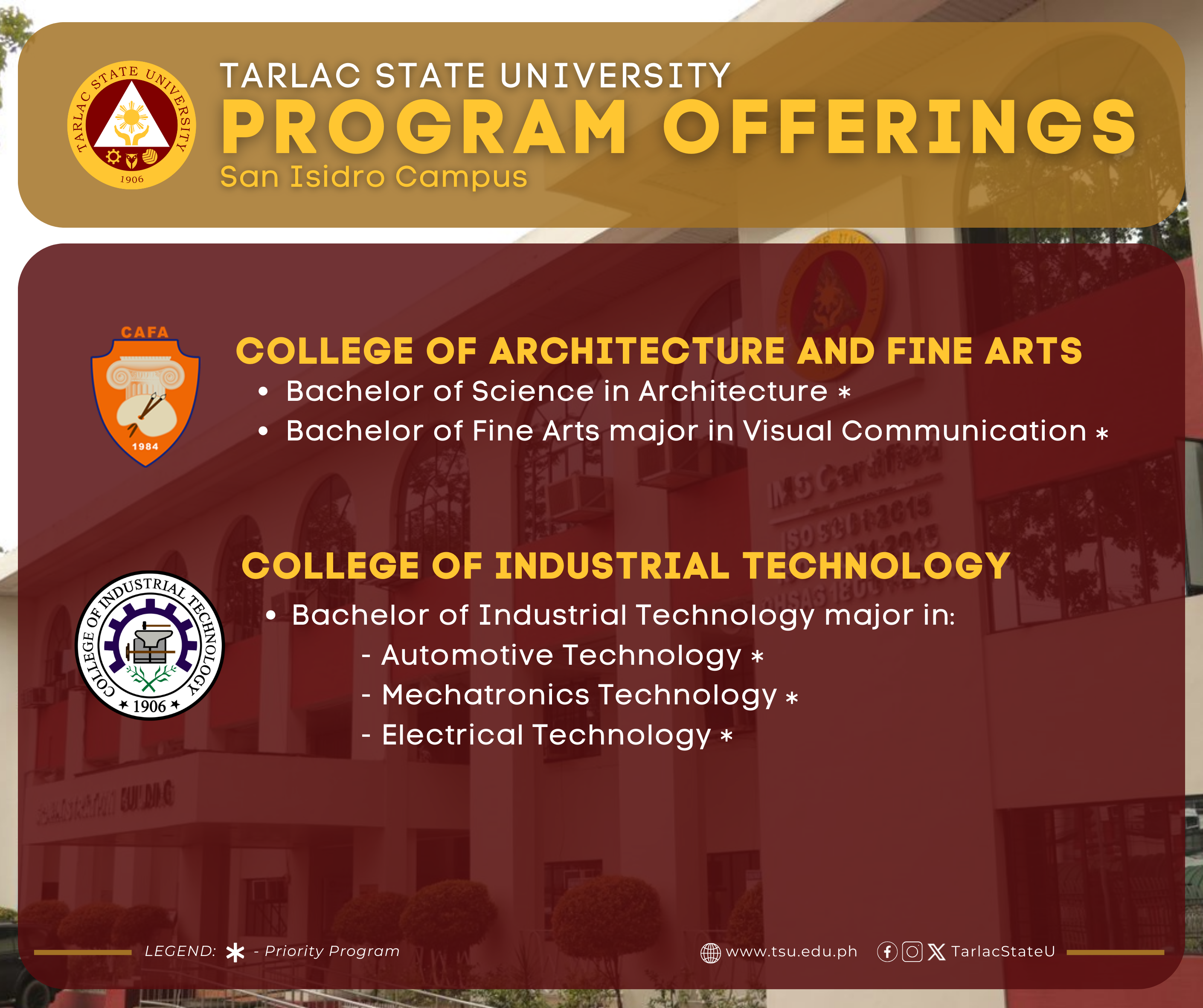 To learn more about the program you wish to apply to, you may also check out this link (https://www.tsu.edu.ph/academics/colleges/)