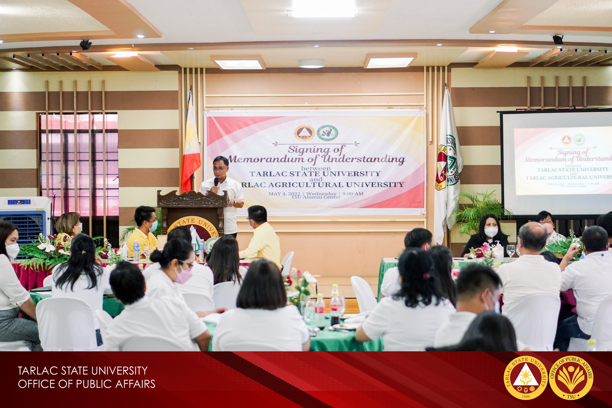 A memorandum of understanding (MOU) was signed between Tarlac State University and Tarlac Agricultural University earlier today (May 4, 2022) at the Alumni Center of TSU Lucinda Campus.